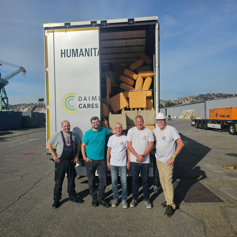 Zudem bestücken wir mit enormer Unterstützung der "Daimler Truck AG" vermehrt größere "Sondertransporte" durch 40-Tonner mit dringend benötigten Gütern für Krankenhäuser und Zivilbevölkerung.